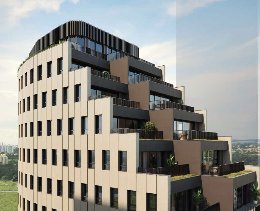 - Arquitetura Inteligente: 12 pavimentos integrados à paisagem com infraestrutura completa, incluindo storage e bicicletário.